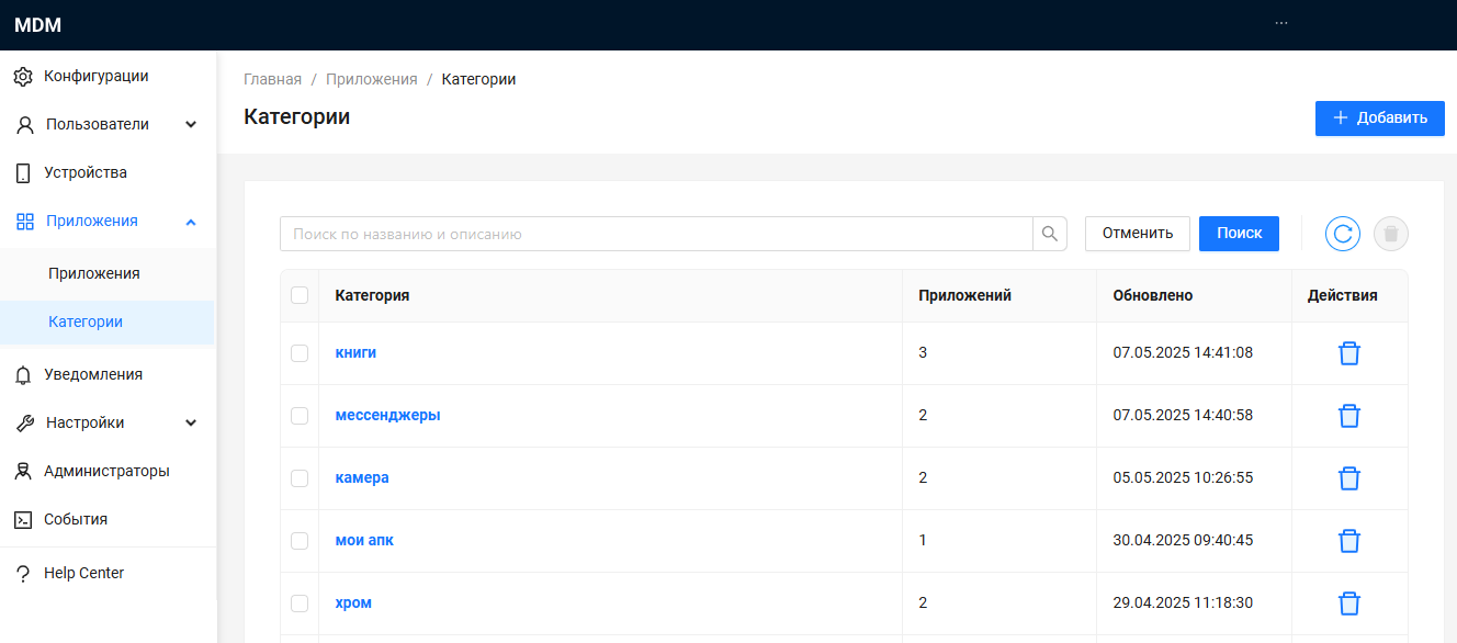 Есть возможность удалить ненужную категорию, при этом приложения остаются доступными и не изменяются. Администратору доступно несколько способов удаления категорий из Aitera MDM: