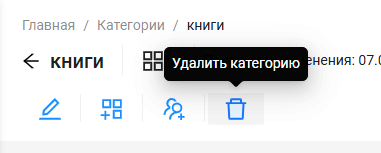 При нажатии на название категории в списке, откроется страница с её подробной информацией. На этой странице можно управлять категорией: