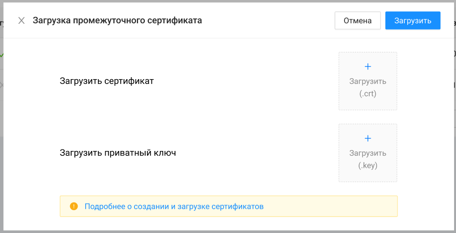.crt) и его приватный ключ (.key). Нажимаем Загрузить.