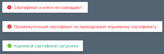 - Проверку принадлежности промежуточного сертификата к корневому.