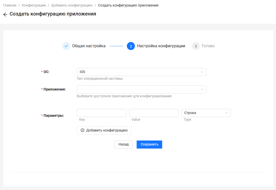 2. Настроить конфигурацию. На этом этапе администратор задает параметры приложения, выполнив следующие действия: