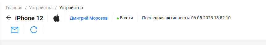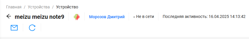 - Последняя активность показывает дату и время последней синхронизации устройства с сервером.