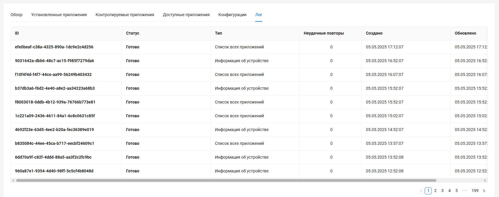 Во вкладке Лог администратор может просматривать журнал событий, связанных с этим устройством.