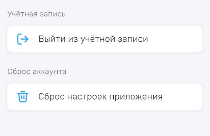 Если пользователь уже авторизован, в разделе Настройки приложения ему доступна опция «Сброс настроек приложения». После выполнения сброса: