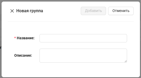 После заполнения обязательных полей нажмите кнопку “Добавить” на модальном окне. После добавления группа отобразится в общем списке.