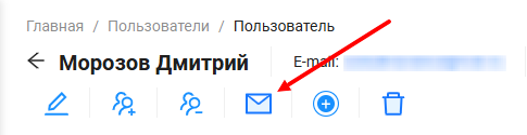 Для отправки уведомление конкретному пользователю нужно открыть его профиль и нажать на кнопку “Отправить уведомление”, заполнить поля в модальном окне и нажать “Сохранить”.