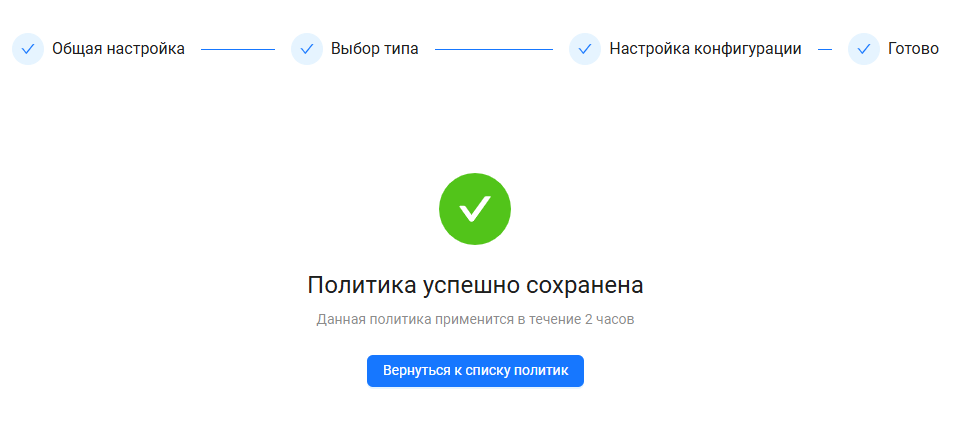 В разделе Политики выводится список созданных политик, где можно узнать: