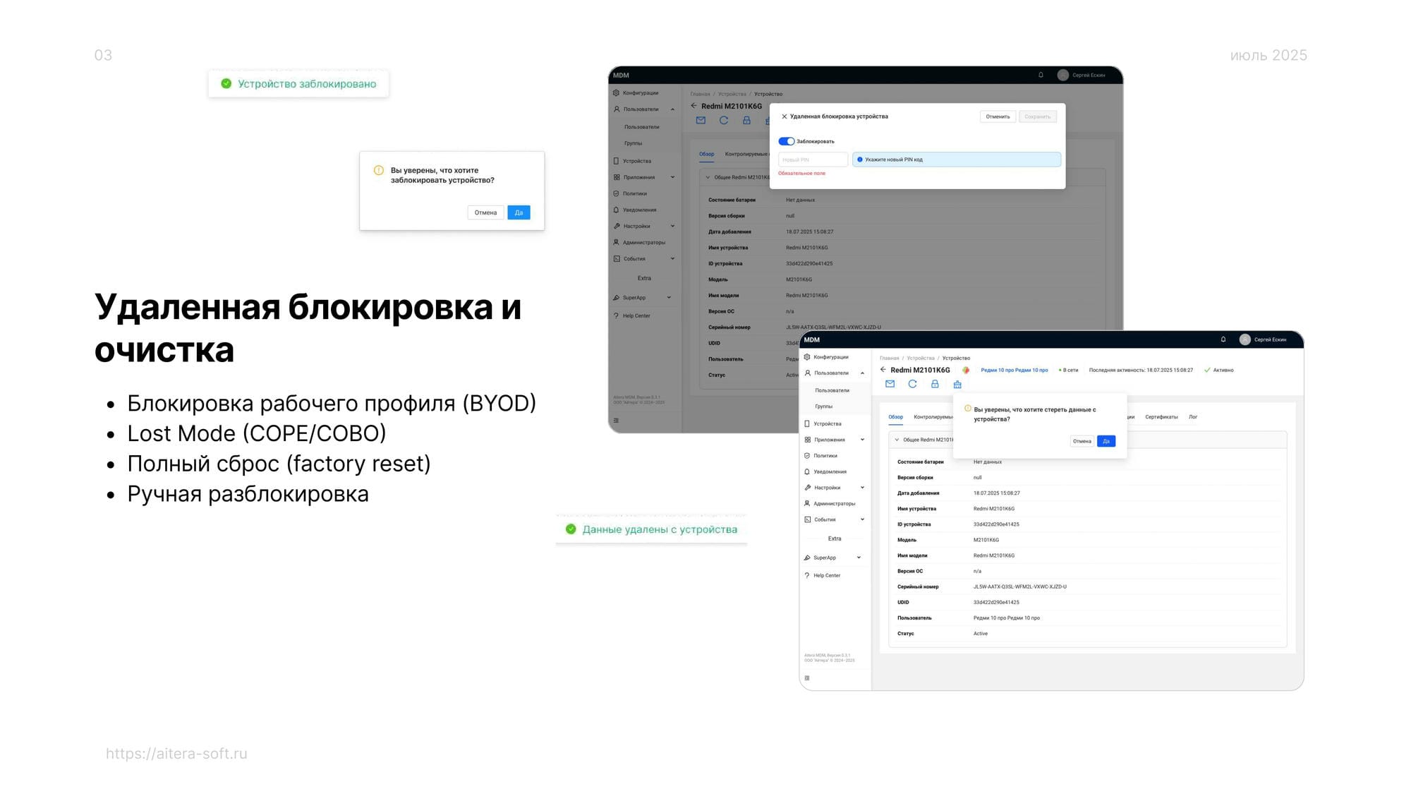 2. Удаленная блокировка и стирание данных на устройстве из консоли MDM