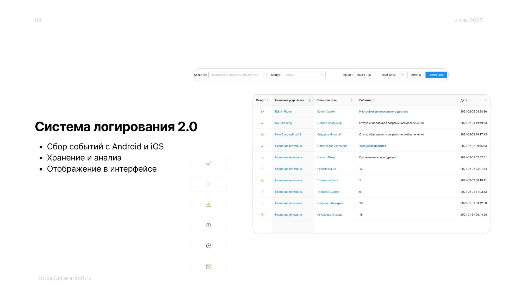 7. Система логирования событий устройств