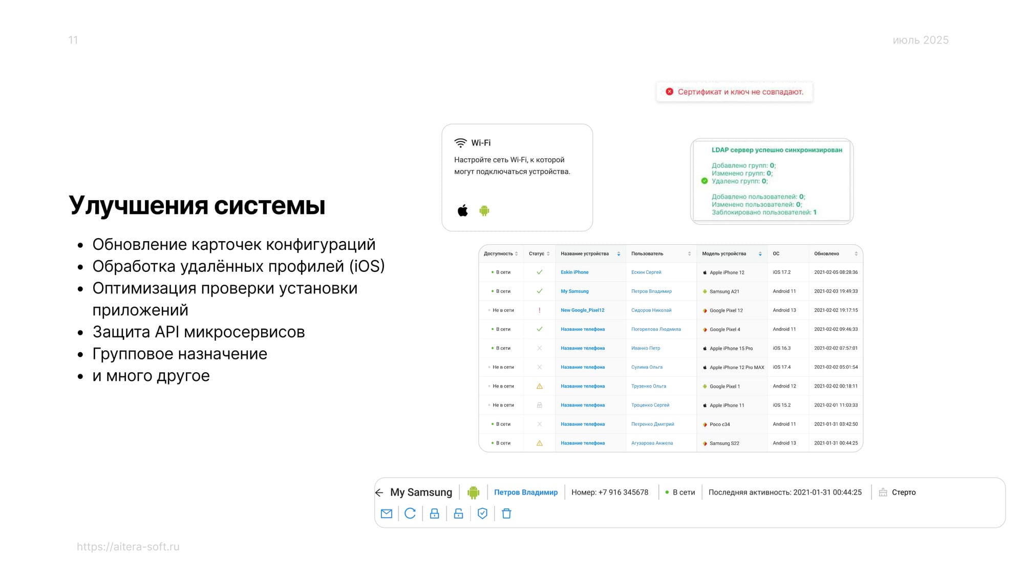 • Выполнена интеграция с механизмом silent-push для оперативного получения актуальных статусов устройств.